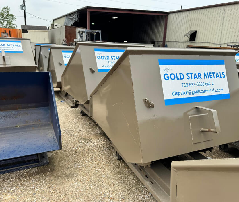 Gold Star Metals is your go-to for exceptional scrap metal container services across Texas. We specialize in efficient and rapid solutions for the manufacturing industry and various job sites, ensuring minimal disruption to your operations. Our range of scrap metal dumpsters, roll-off containers, hoppers, and flatbeds guarantees an effortless scrap management process.